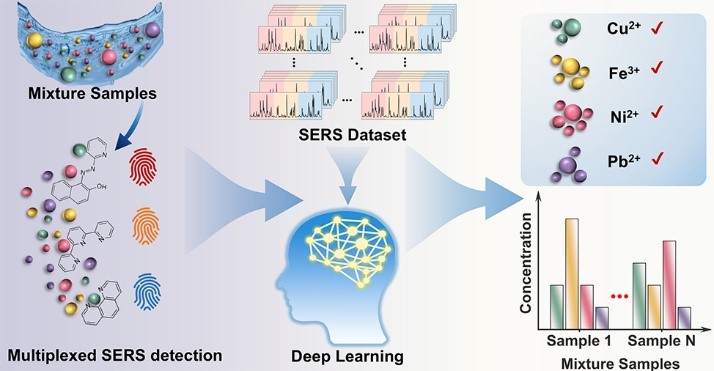 在涉及金属离子的突发水环境事件中,多种金属离子常同时存在并相互干扰,叠加毒性与快速扩散对监测的时效与准确性提出更高要求。成人卡通 硕士研究生李樊同学在《Environmental Science & Technology》发表论文“AI-Enhanced SERS with Probe Combinations for Concurrent Identification and Quantification of Coexisting Metal Ions in Water”,通讯作者为龚正君教授和范美坤教授。本文提出“探针组合 + AI 解码”的 SERS 体系:在 PAN、...
