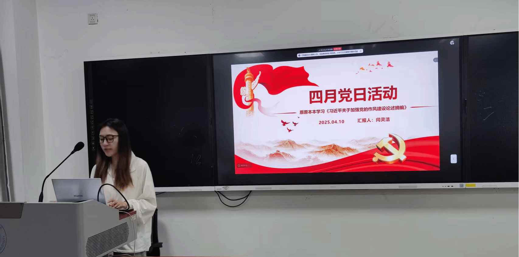 20254101900本科环境第一党支部X4137开展4月党日活动本次学习主题为原原本本学习《习近平关于加强党的作风建设论述摘编》。本次活动由党支部书记闫灵洁同志主持并领学。