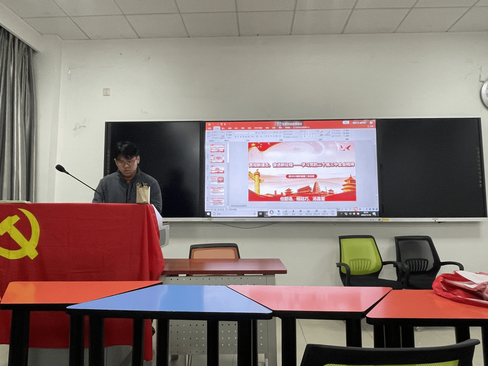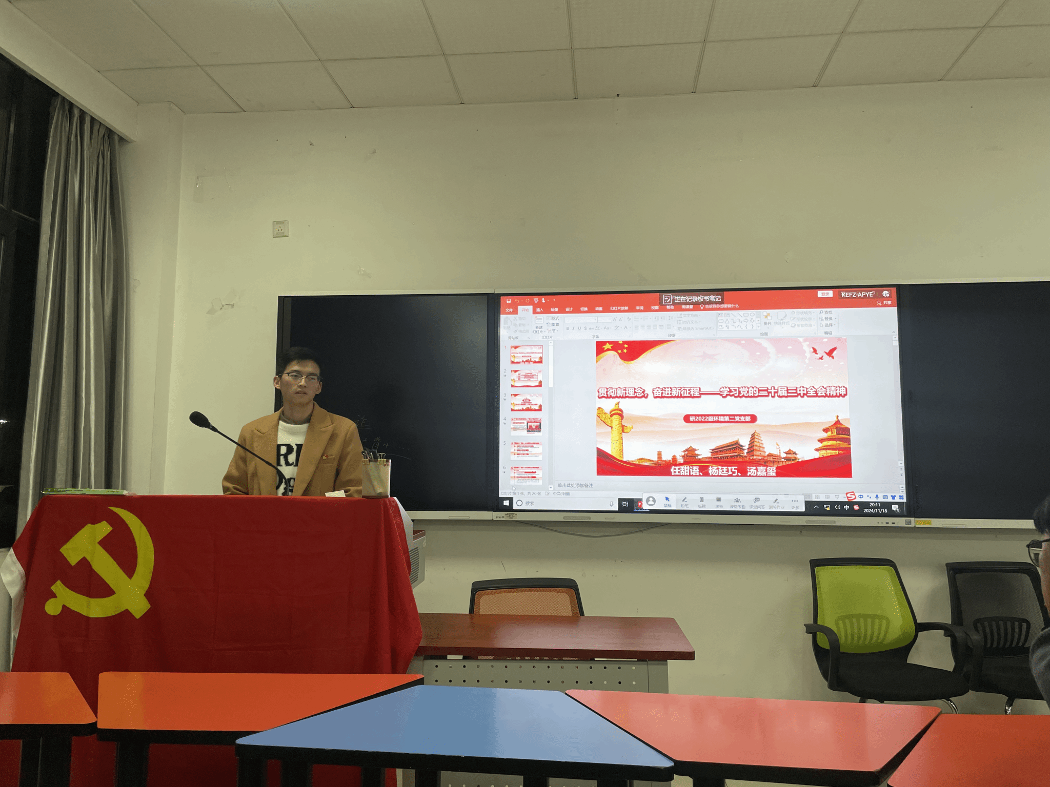 为积极践行党的号召,凝聚青年党员力量,确保思想与行动的高度统一202411172000,研22级环境第二党支部于X4131教室开展主题党日活动,围绕党的二十届三中全会精神、全国教育大会精神进行深入学习以及专题学习教育现代化的具体要求与路径。会议由支部书记邱建宏主持,由汤嘉玺同志主讲