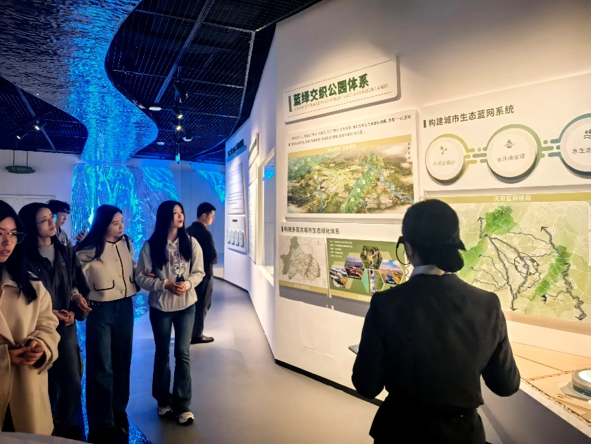 随后,支部成员步入水文化博物馆——初心馆进行参观学习。初心馆以其独特的圆弧形设计,融合了蓝绿二色作为主基调,呼应成都市蓝绿相融的天府蓝网规划理念。展馆以治水为主线,通过天人合一 水造天府治蓉兴蓉 其枢在水天府蓝网 沱江实践滴水之识 美丽新篇四大篇章,生动再现蜀地治水的悠久历史,深入讲述了蜀水的奥秘与天府治水的历程,揭示了成都市致力于打造清澈可触的生态基脉、蓝绿一体的活力动脉和价值彰显的发展兴脉的坚定决心与显著成效。