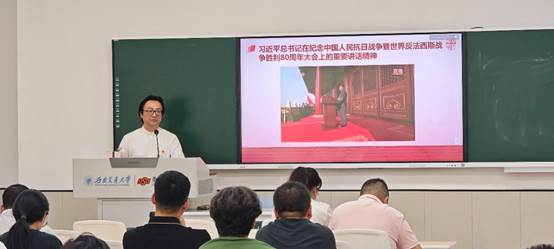 学院党委书记甘霖以《弘扬伟大抗战精神,向着中华民族伟大复兴的光辉彼岸奋勇前进——深入学习习近平总书记关于伟大抗战精神重要论述,全面推进成人卡通
