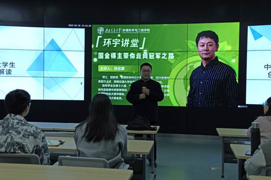 特别邀请国奖金牌得主、地学学院地质工程系副主任张志厚教授担任主讲,结合自身经验和大赛主题,以“高校主赛道讲解”为重点召开环宇讲座。讲座在犀浦校区X4348举行,由学院党委书记甘霖主持,团委书记翟琦、青年教师代表俞阳出席了此次讲座。