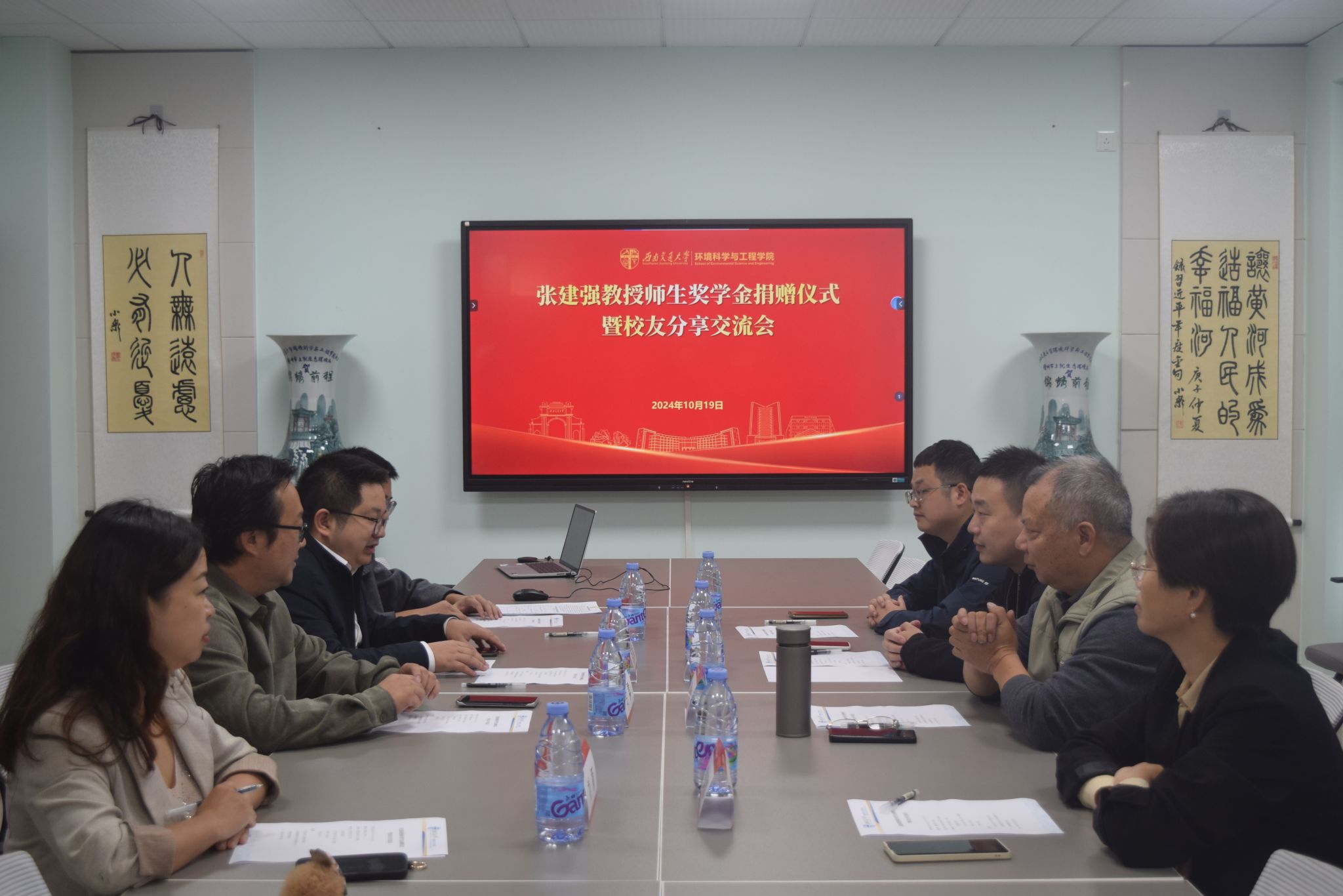 于X4348举办了“张建强教授师生奖学金捐赠仪式暨校友分享交流会”,学院党委书记甘霖,张建强教授,校友工作办公室主任刘颖老师,校友代表何杨、汪锐、朱丽娜,辅导员崔宇龙以及研究生、本科生代表参加。会议由学院党委副书记胡安辉主持。