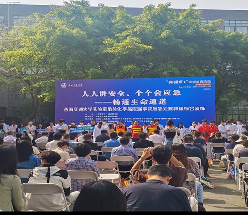 2024年实验室危险化学品泄露事故应急处置救援综合演练暨实验室安全培训在犀浦校区举行。该活动由“平安交大”建设委员会主办,国有资产与实验室管理处承办,保卫处、校医院、成人卡通
