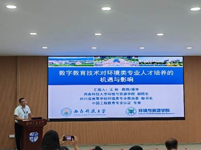 副院长赵锐委员做了题为“以本为本,基于产出导向的环境教学改革”的报告。专家报告内容涵盖环境科学基础理论前沿、工程技术创新应用、跨学科融合教育等多个维度,围绕环境科学与工程领域的人才培养现状、挑战与机遇展开了深入交流与探讨,强调了在当前全球环境问题日益严峻的背景下,加强环境科学与工程人才培养的重要性与紧迫性。