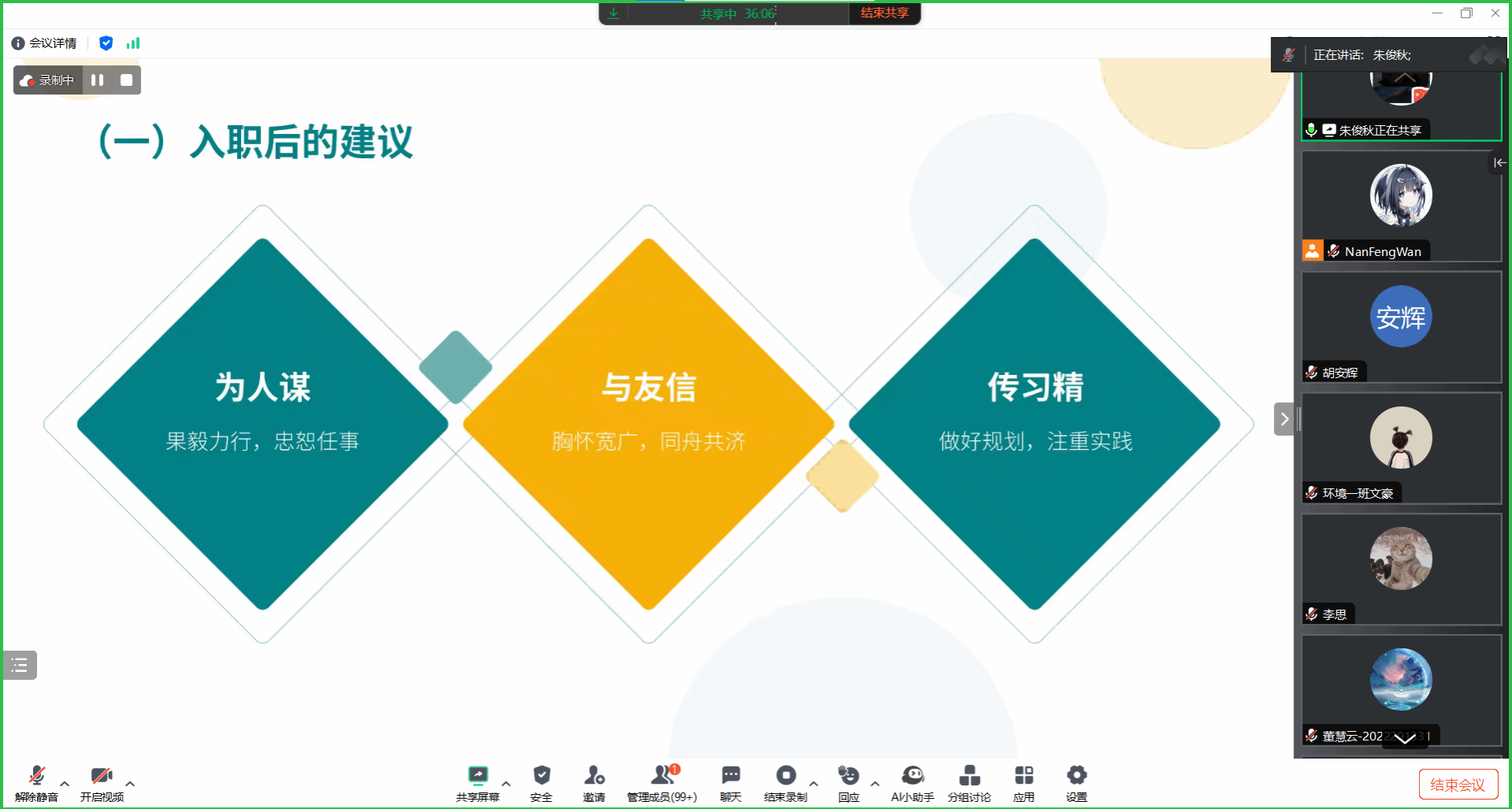 于8月17日启动了环抱梦想启航未来校友分享系列活动,第一期邀请到了三位在环境工程领域取得优异成绩的院友,为同学们讲述自己的成长故事、分享宝贵经验、指明前进方向。学院120余名即将毕业的本研学生参加了本次线上分享活动。