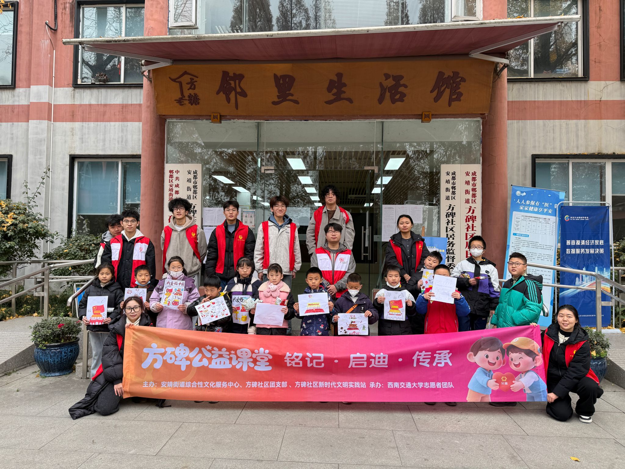 20251214日,“铭记启迪传承”公益课堂在方碑社区顺利开展。本次活动由安缩街道综合性文化服务中心、方碑社区团支部、方碑社区新时代文明实践站联合主办,环境青协承办,20余名5-12岁社区儿童参与其中,通过寓教于乐的形式接受爱国主义教育。
