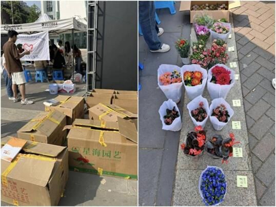 上午九点活动正式开始。本次活动志愿者共分成四组,从上午九点持续到晚上六点,始终站在为同学们服务的第一线上。志愿者们将精心挑选的鲜花摆放整齐并贴好标签后,吸引了许多同学前来询问和兑换鲜花。对于同学们的好奇与疑惑,志愿者们做出耐心、细致地解答,及时帮助前来参与活动的同学搬运鲜花、登记废品兑换的分数。活动现场还设有环保知识问答环节,帮助同学们巩固和拓展环保知识。于此同时,机动组的志愿者们驱车穿梭于南区和北区各个学生宿舍,帮助废品较多的同学将废品送往活动场地进行称重和积分兑换,整个活动现场热闹而有序。