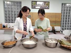 活动伊始,翠绿的粽叶、雪白的糯米、浓稠的红糖水、硕大的鸭蛋等原料早已准备就绪。经验丰富的老党员同志主动化身“技术指导”,现场演示卷叶、填米、裹实、扎绳的娴熟技艺。年轻党员们跃跃欲试,或认真模仿,或虚心求教。全体党员都亲自下手,包粽子、制作糯米蛋,活动现场笑语盈盈,其乐融融。卷叶时的小心翼翼,填米时的满满当当,捆扎时的巧手翻飞,每一个步骤都凝聚着对中华传统习俗的尊重与传承。当一个个形态各异却饱含“中国心”的粽子在手中诞生,大家不仅体验了劳动创造的喜悦,更深切感受到中华传统节日所承载的深厚文化底蕴与家国情怀,民族认同感与自豪感油然而生。