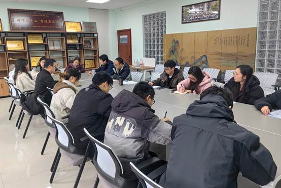 与会同志在会议第一议题中,共同学习了习近平总书记在《求是》杂志上发表的重要文章《促进高质量充分就业》,并传达了学校2024年第6次党委书记工作会议精神。