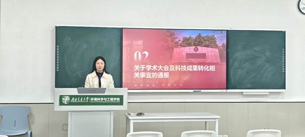 承办的“2025新时代高校环境教学改革与创新交流会”筹备与举办过程中的辛勤付出表示感谢。此次大会汇聚了全国200余所高校的700余位专家学者参与,不仅大幅提升了学院在环境教育领域的影响力,也为学院高质量发展注入了强大动能。随后,张涵副院长详细解读了学校最新发布的《科技成果转化收益分配管理办法(试行)》,强调学院将通过政策支持、资源整合等方式,鼓励教师加速科研成果落地转化,服务国家“双碳”目标需求。