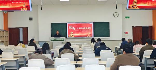在X4247教室组织本年度第七次教职工政治理论学习,通过理论学习、工作通报与专题讲座相结合的形式,深化教职工思想认识,凝聚发展共识。学院全体在校教职工参与学习,由学院工会主席彭道平主持。